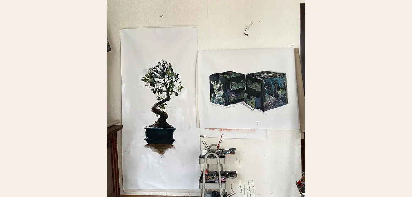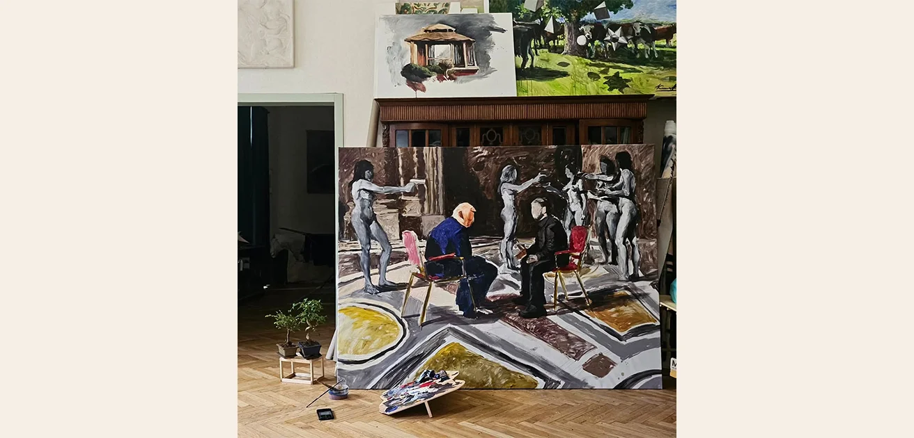 Yevhen Klimenko is a contemporary Ukrainian painter and graphic artist born in Dnipro in 1994. He studied easel painting at a theater-art school, Kharkiv Academy of Design, and earned a master’s at NAOMA in 2020. His expressive style blends bold color contrasts and mixed media techniques.