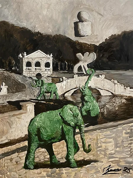 Klimenko’s style combines expressive color, contrasts of light and shadow, textured surfaces, and dreamlike motifs. He experiments with painting, graphics, collage, and digital media. His works are held in private collections in Ukraine, the USA, Germany, France, and the Czech Republic.